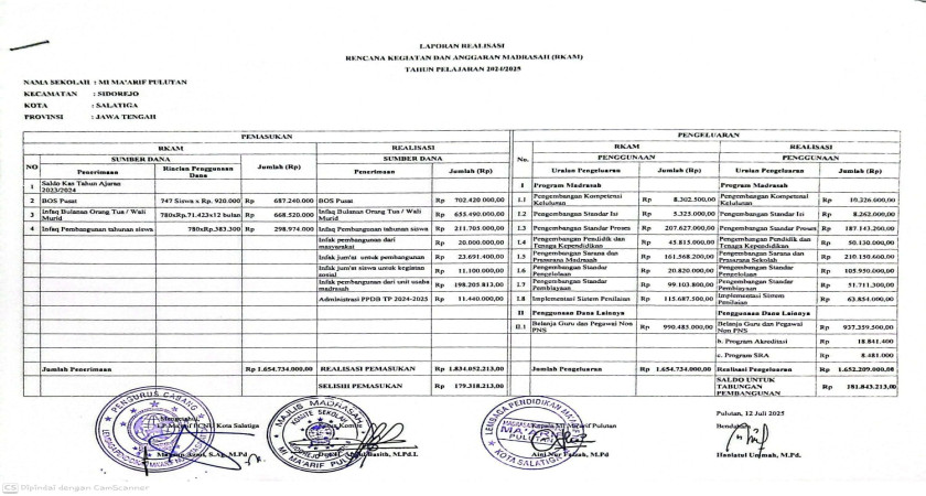 Laporan Realisasi Rencana Kegiatan dan Anggaran Madrasah (RKAM) Tahun Pelajaran 2024-2025